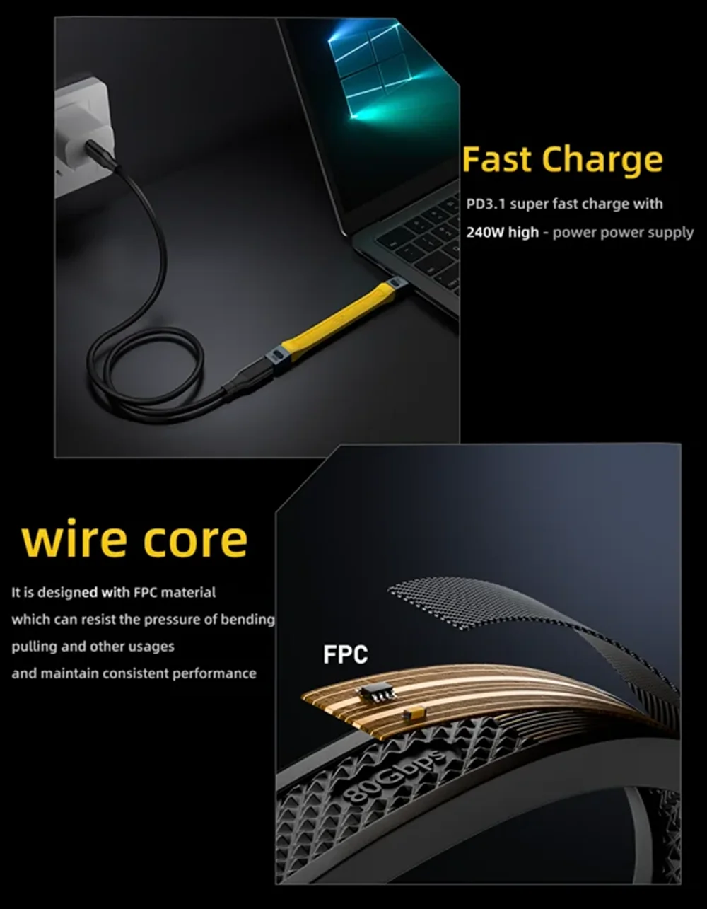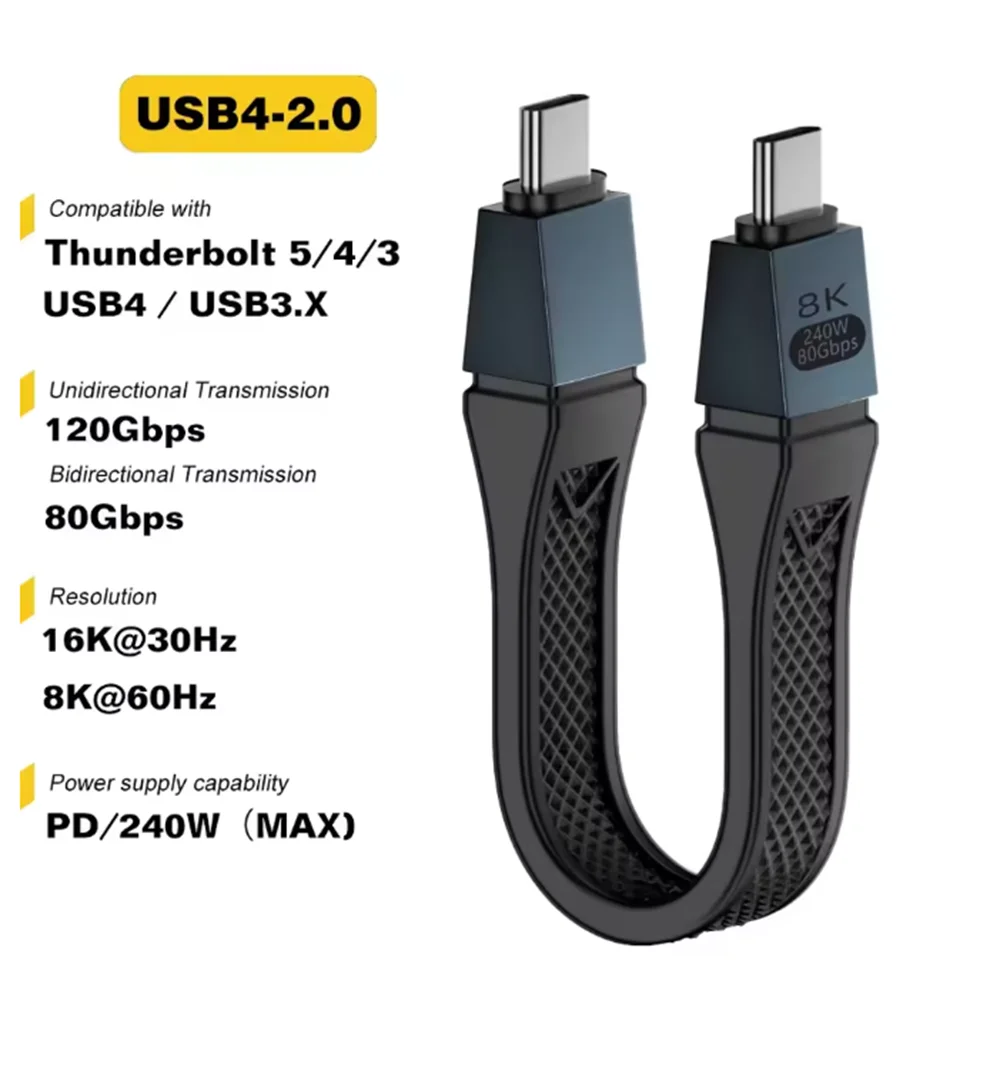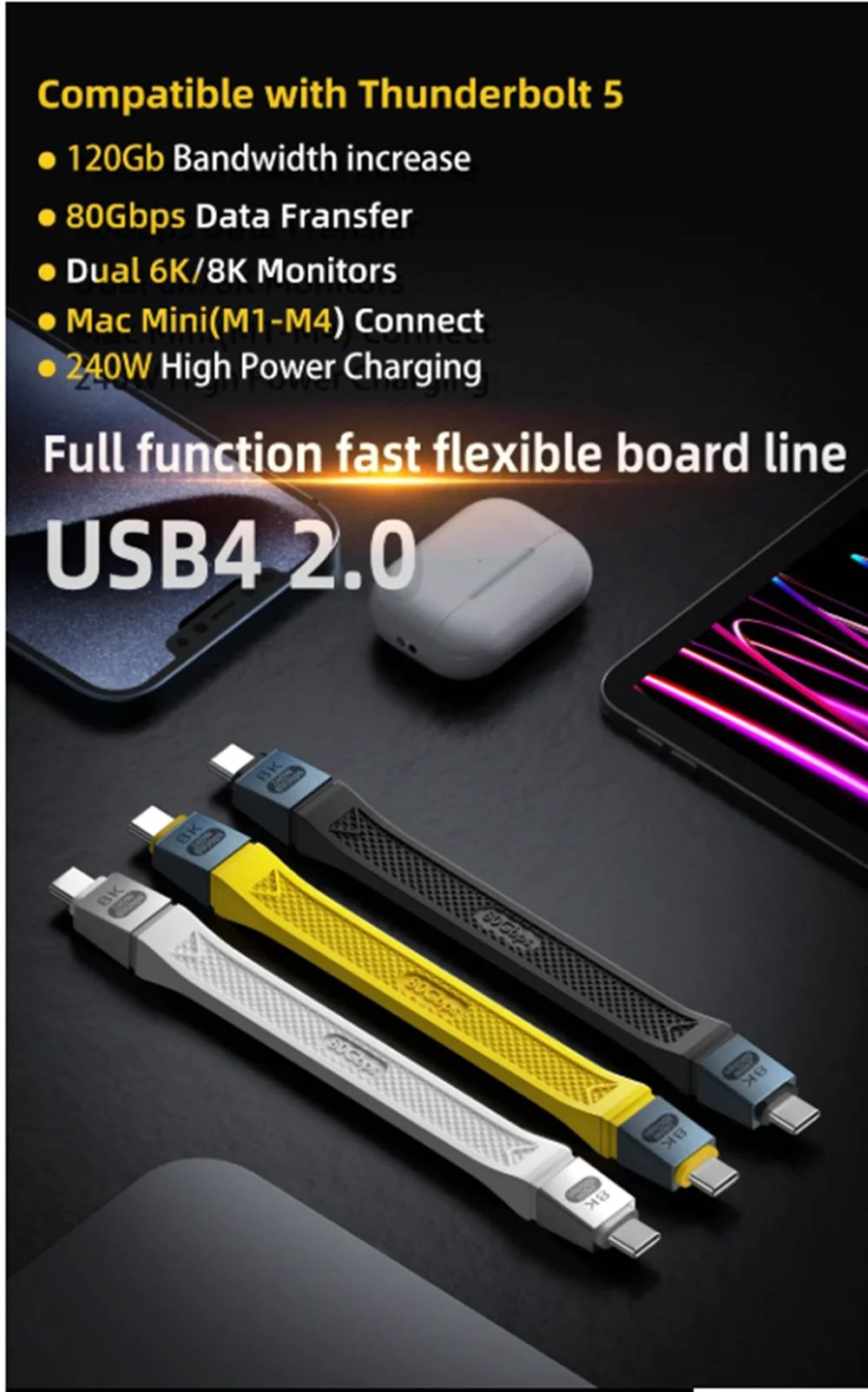 120/80Gbps USB 4 V2.0 Flexible FPC Soft Board Cable 8K/60Hz 240w PD Charge Thunderbolt 5 for 16 Pro Max HDD eGPU Power bank Wire