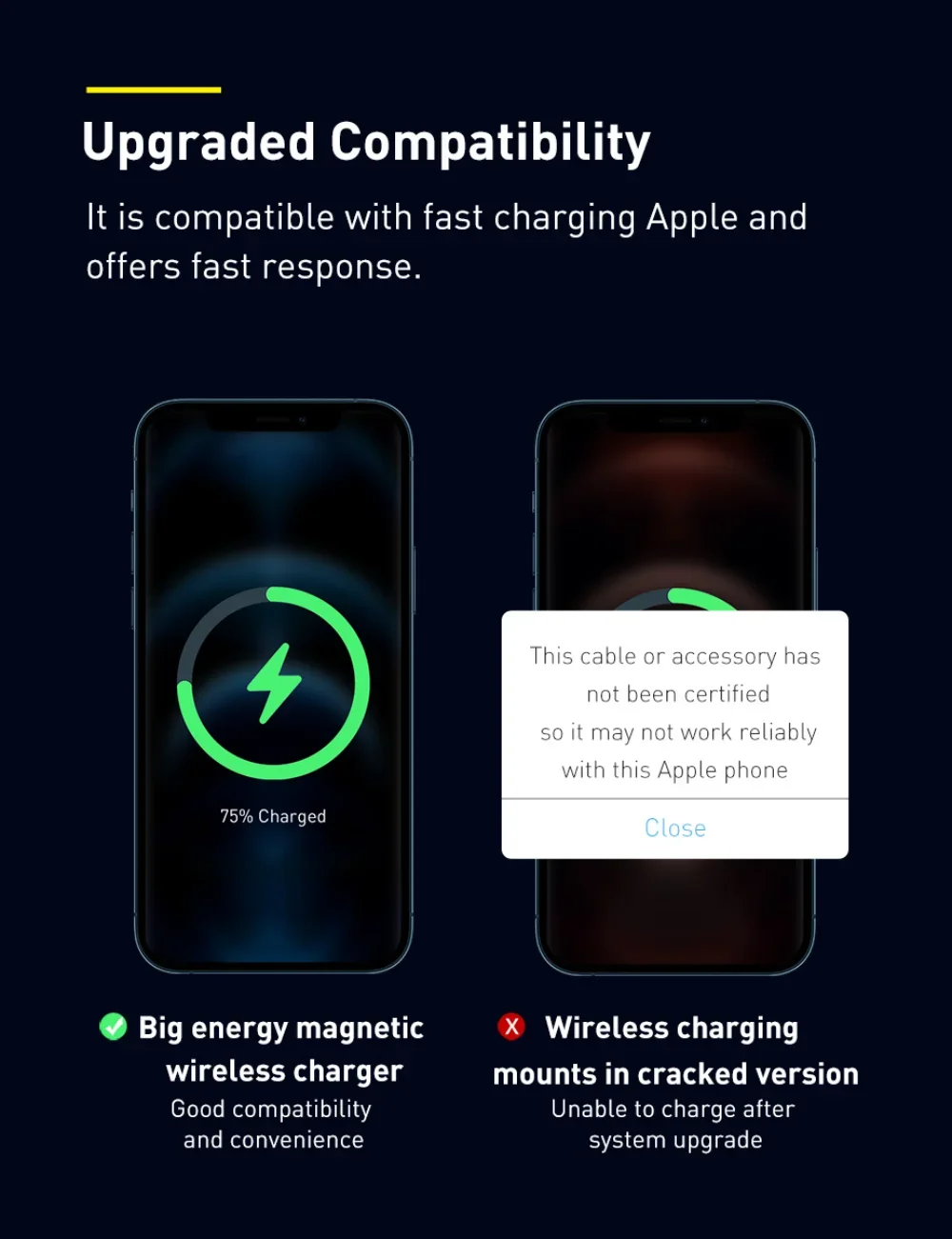- Features: With Charging Indicator, With Cable, With Holder, Used with MFI, Built in Cooling Fan, Magnetic Wireless Chargers