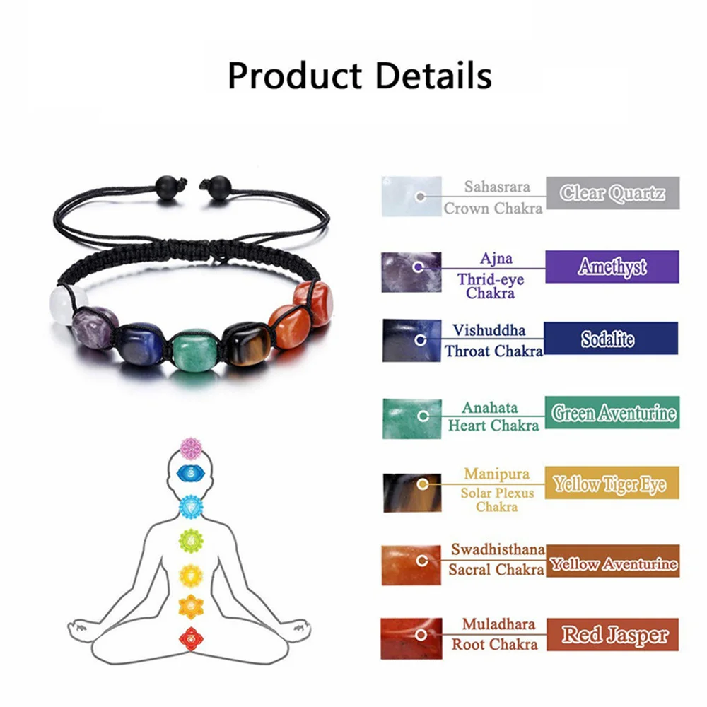 Product Feature: Natural Stone + 7 Chakra + Stone Beads + Braided Rope + Adjustable.