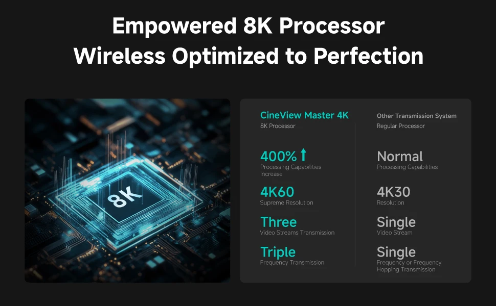 With an 8K processor and its powerful capabilities, the CineView Master 4K can simultaneously transmit via different streams to meet diverse applications.