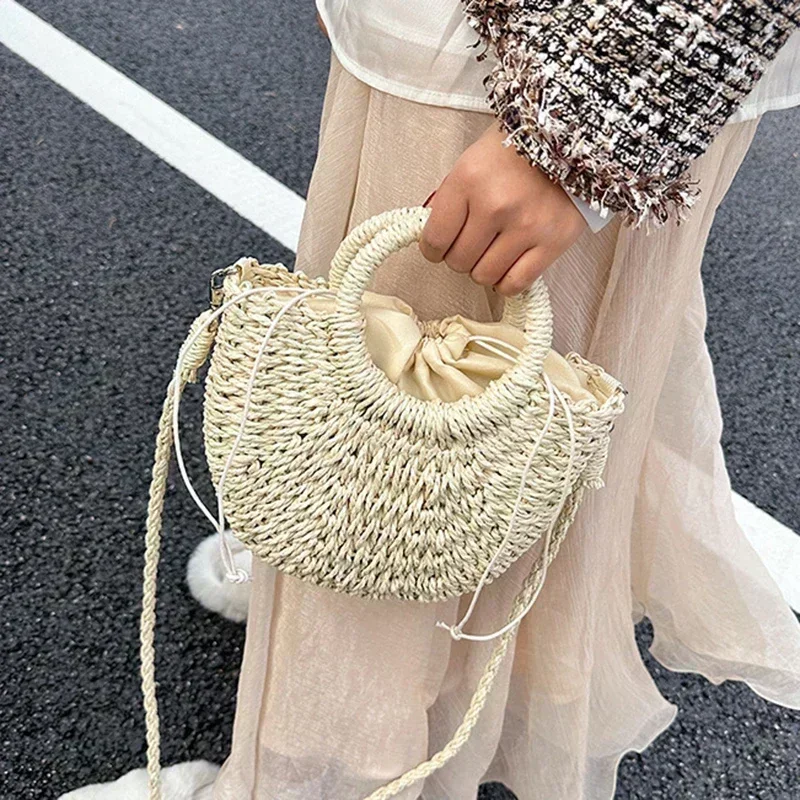 • SoftMaterial:MadeofStraw material,thebagiscomfortabletocarryandwon’tweighyoudown,evenwhenfullyloaded.