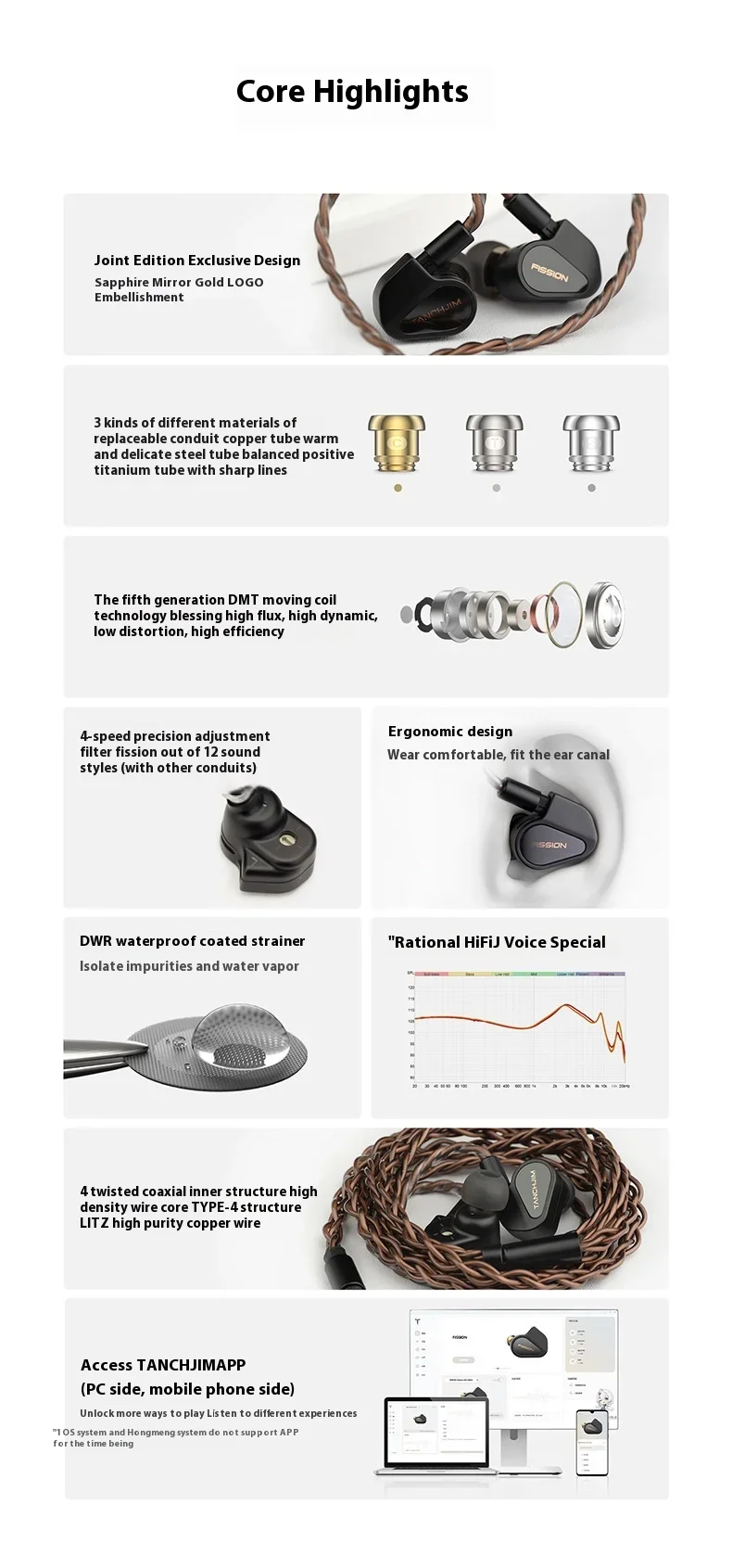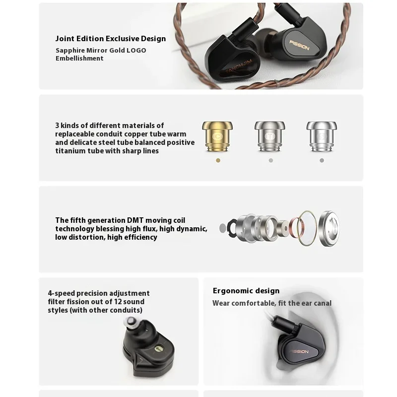 Tanchjim FISSION Dynamic In Ear HIFI Music Monitor Earphones Waterproof 4-speed Adjustable filter Interchangeable Cable DMT5