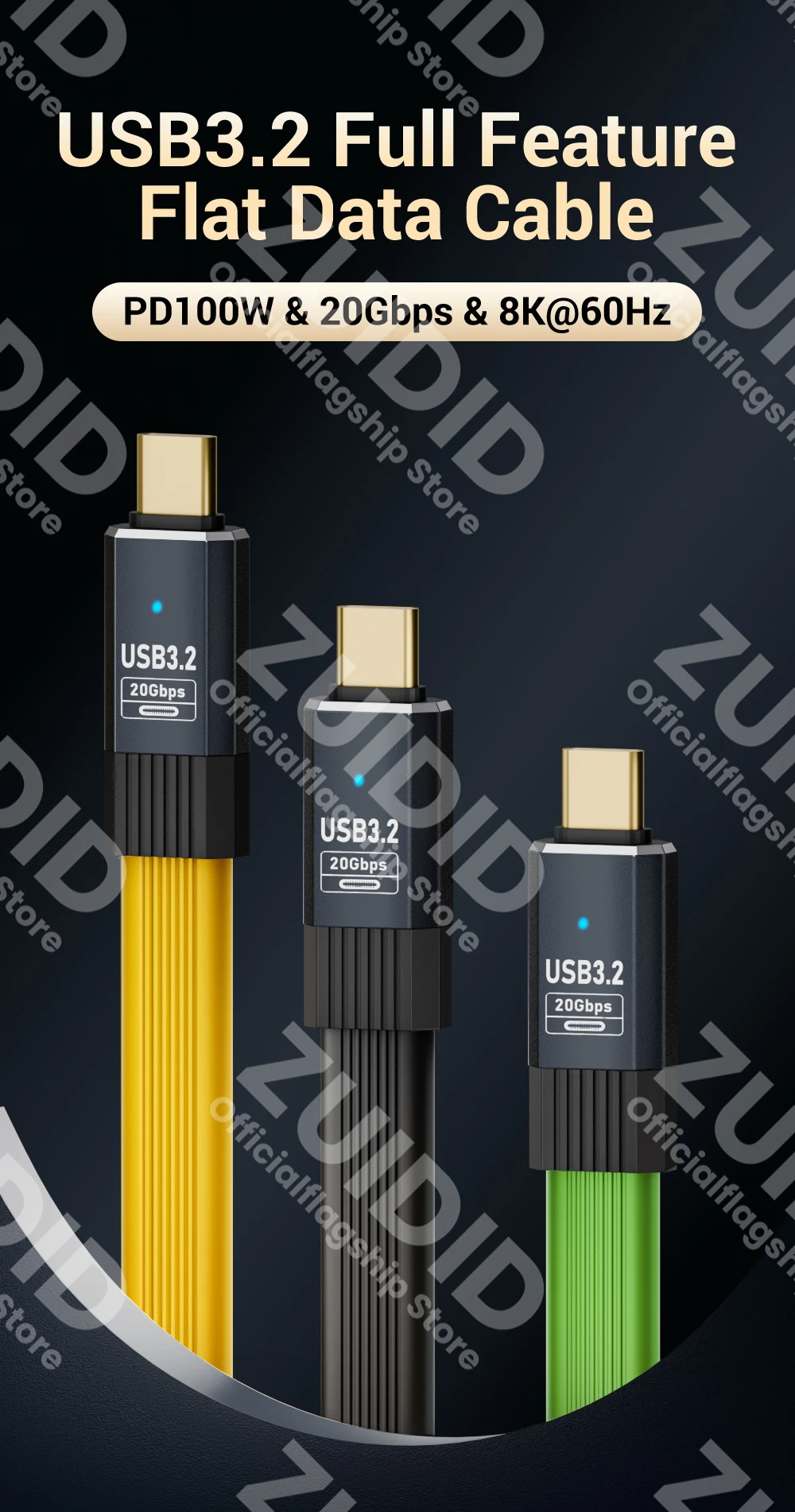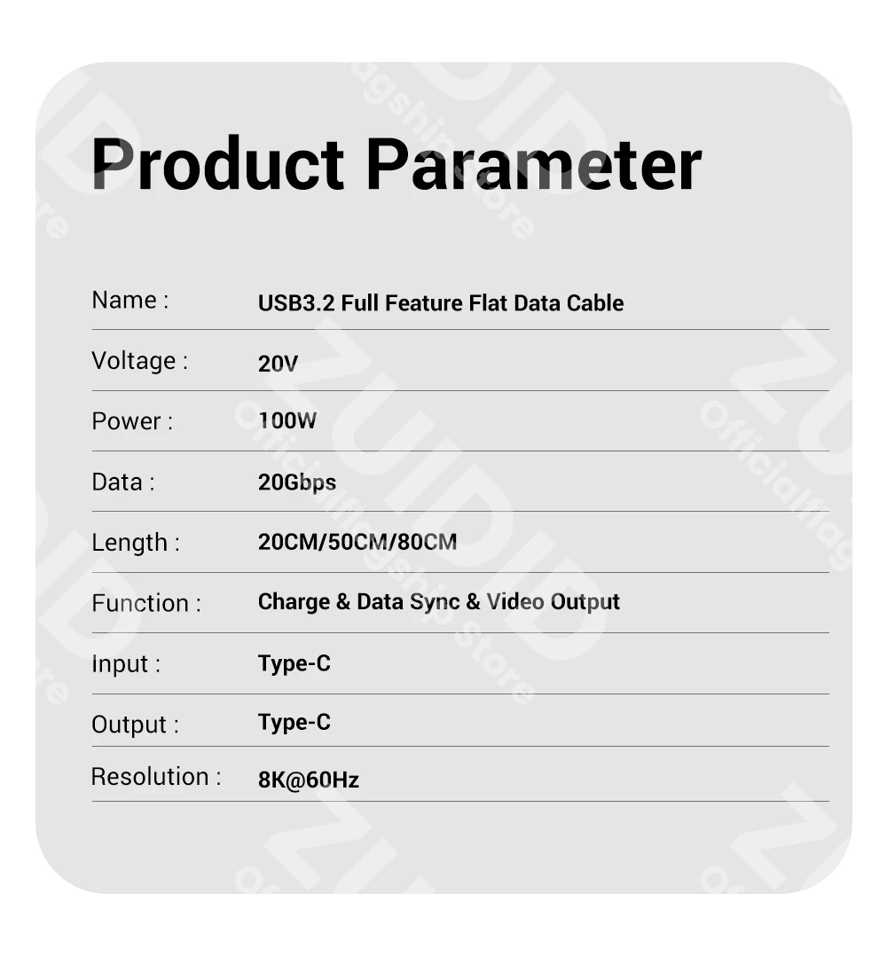 【20Gbps Super High Transmission Speed】100W USB3.2 cable can provide 20Gbps transmission speed, allowing you to transfer high-definition videos, movies, music and pictures within one second, achieving faster data exchange than 10Gbps cables.