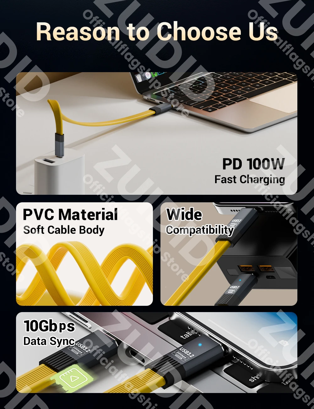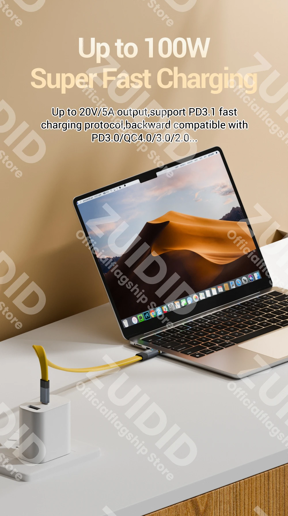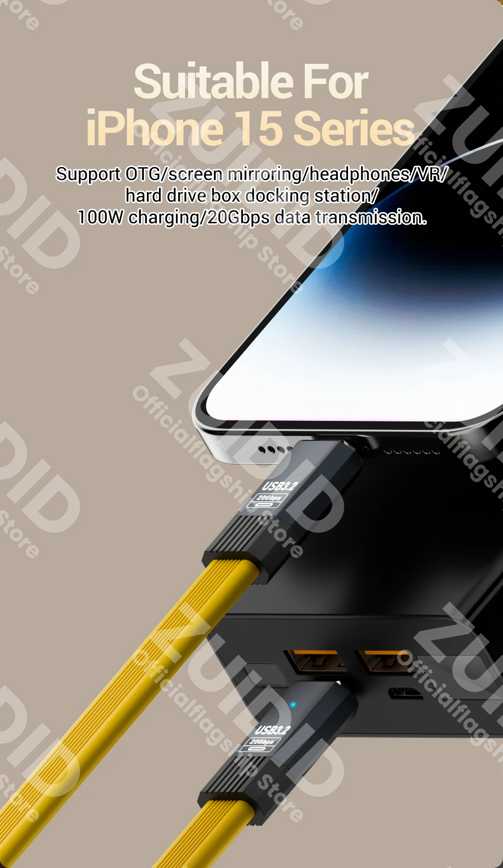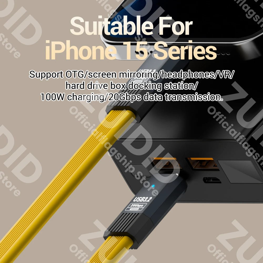 【High Power Output】The 100W USB3.2 cable compatible with QC4.0/PD3.0/2.0 fast charging protocols, this USB C fast charging cable can fully meet the needs of fast charging and also support fast charging for iPhone 15 series.